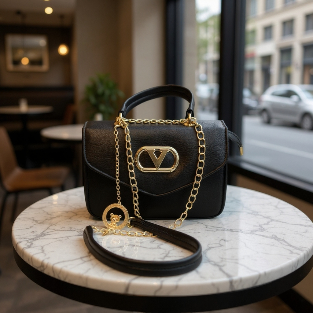 China Leather Stylish Side Bag for Women DS350 BLACK