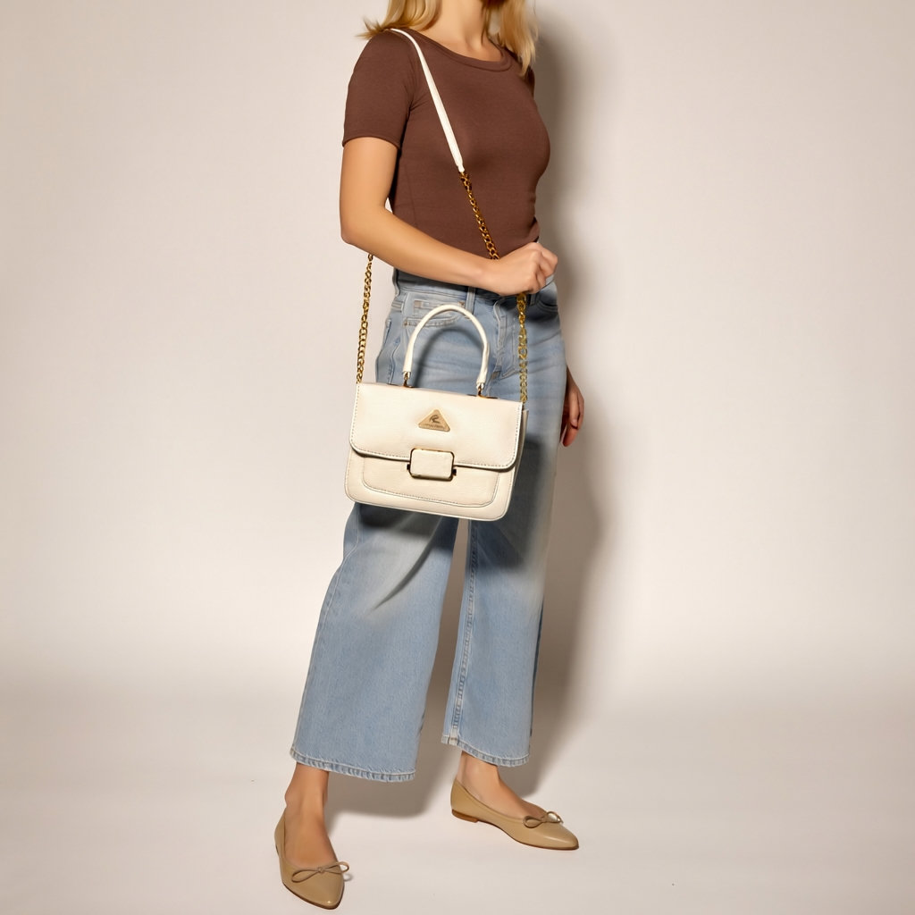 China Leather Stylish Side Bag for Women DS400 WHITE