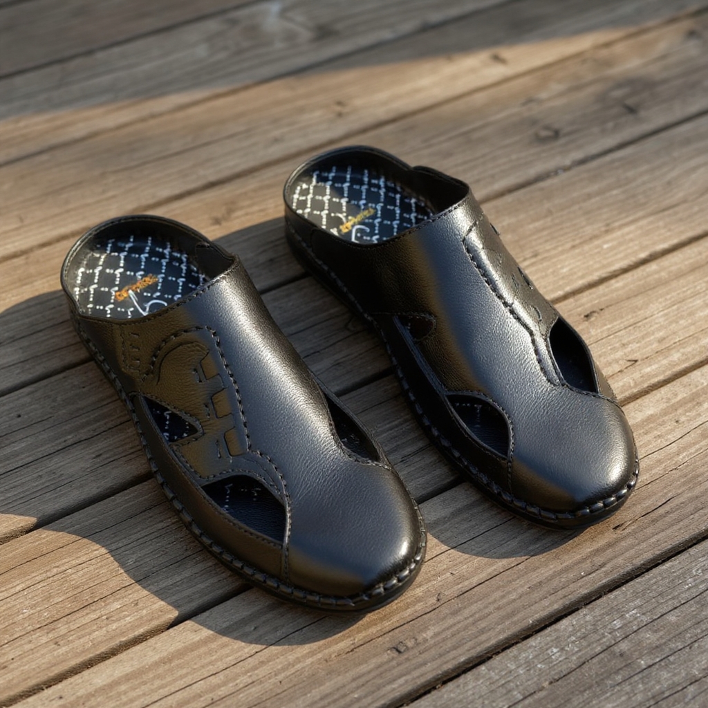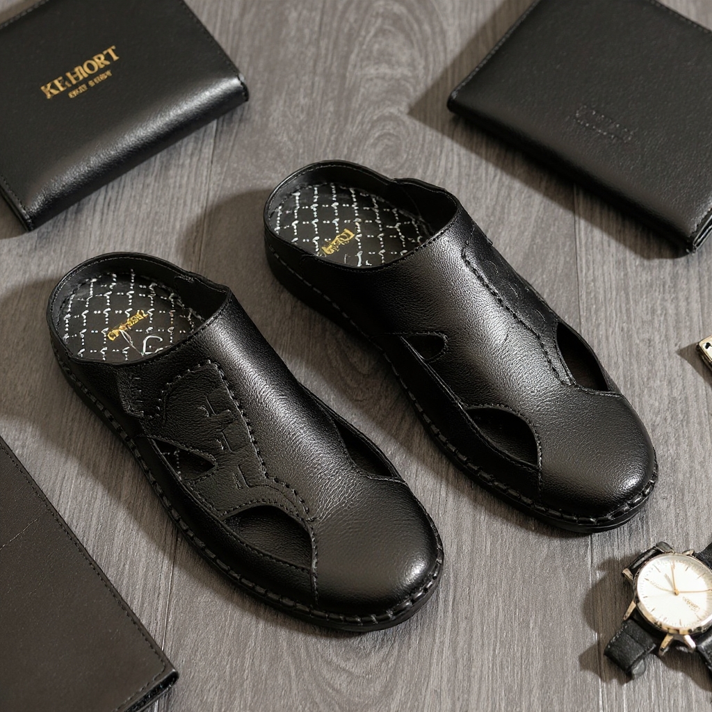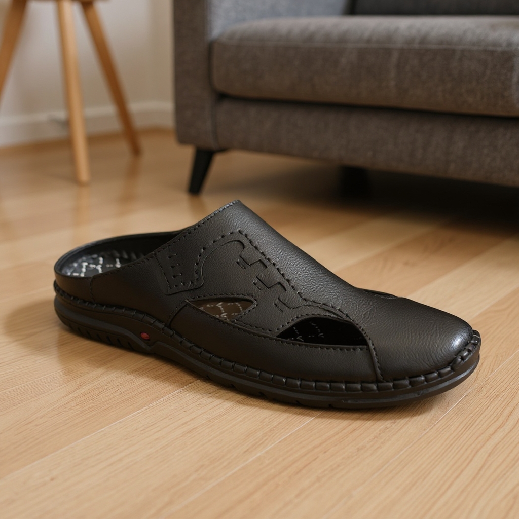 Odheek Original Leather Premium Half Sacchi Sandals For Men ODHS 651 BLACK