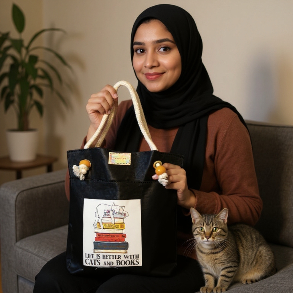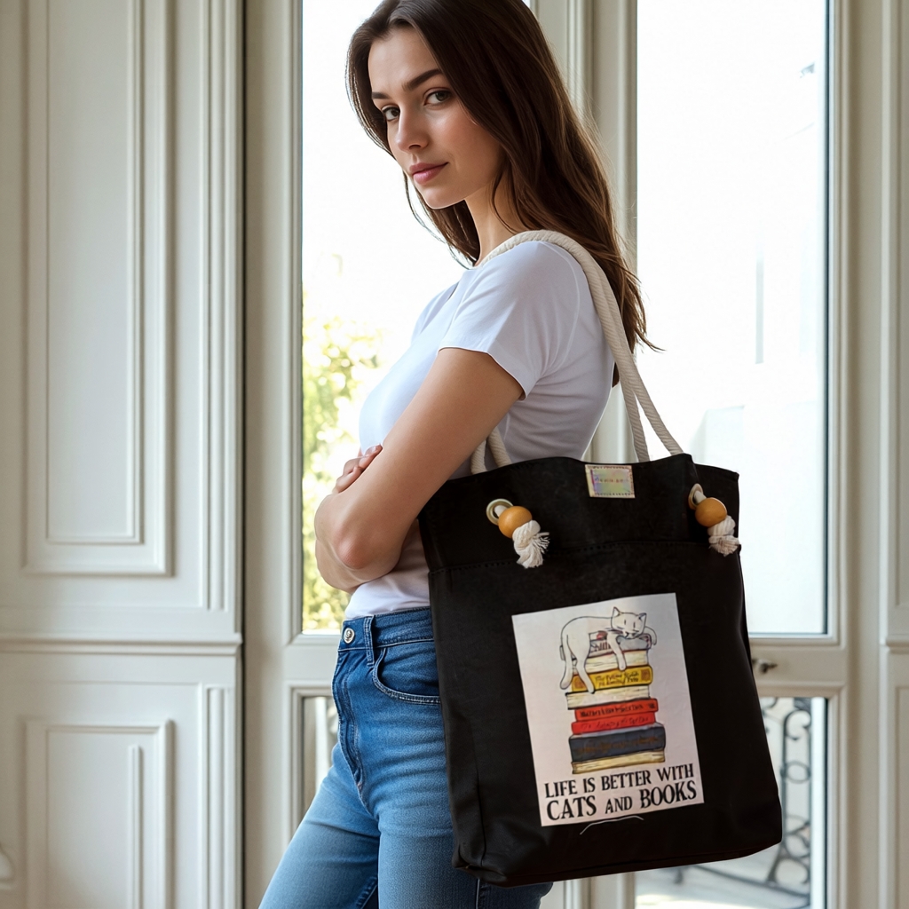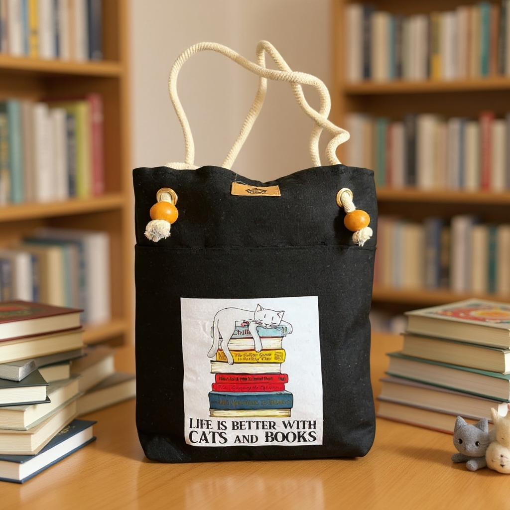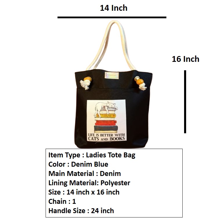 āĻāĻžā§Stylish Tote Bag For Women Denim Canvas DS140 BLACK CAT