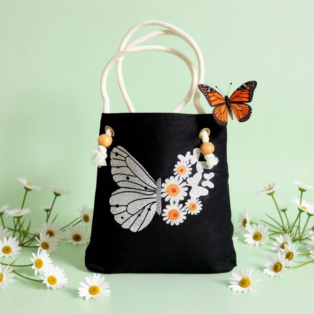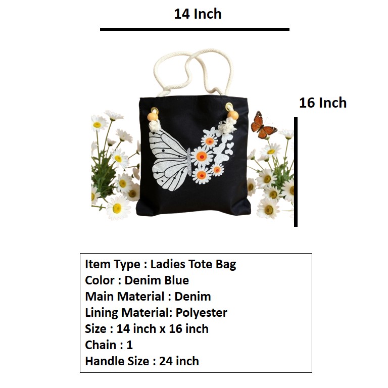 Stylish Tote Bag For Women Denim Canvas DS140 BLACK JEANS