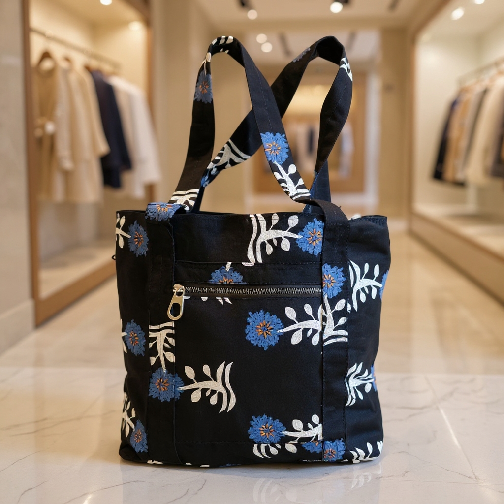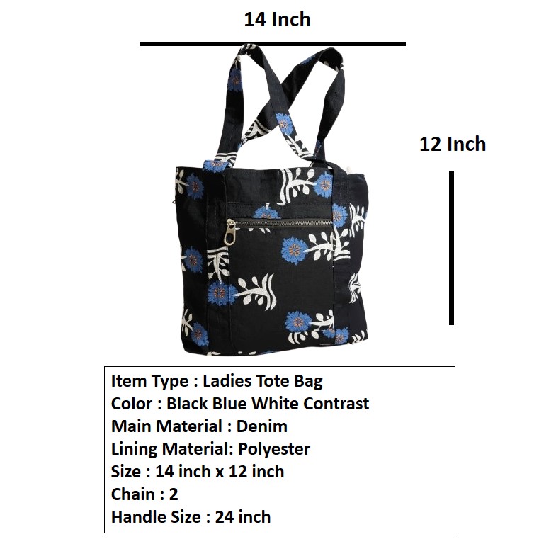 Stylish Tote Bag For Women Denim Canvas DS140 BLACK LEAF