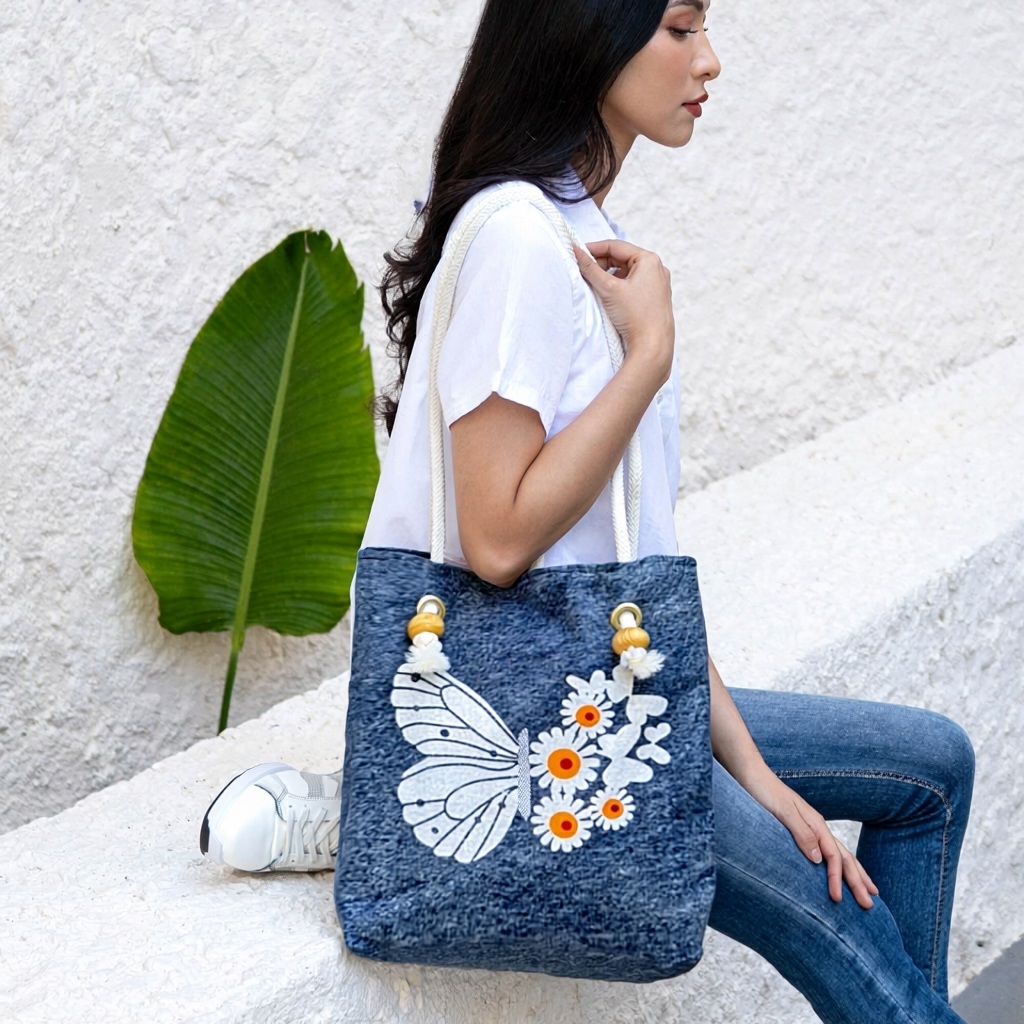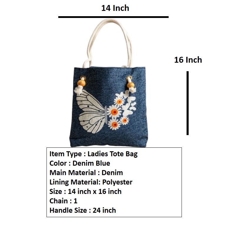 Stylish Tote Bag For Women Denim Canvas DS140 BLUE JEANS